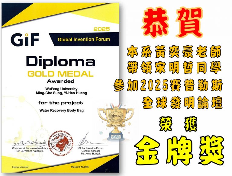 黃奕豪老師指導學生宋明哲參加2025賽普勒斯全球發明論壇榮獲金牌獎